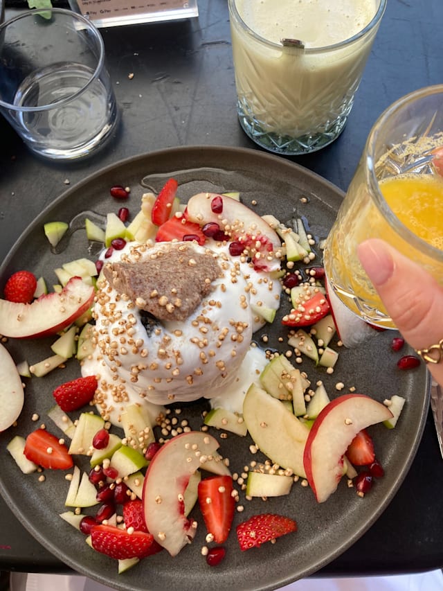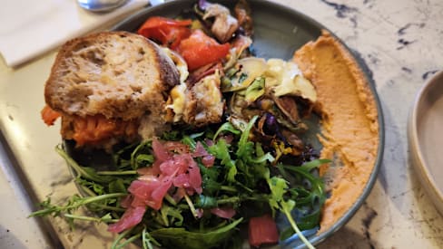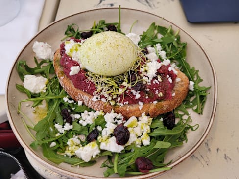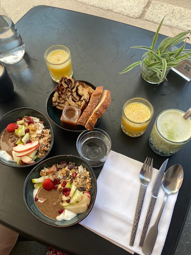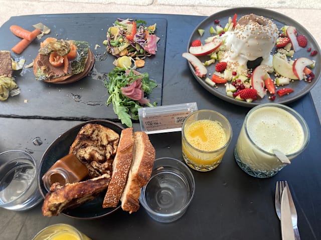 7/10The place is nice and menu looks varied. I liked my hot drink and the yogurt bowl, however, the savory babka was very bitter and the chocolate average was just ok. The price is fine for the amount of food.