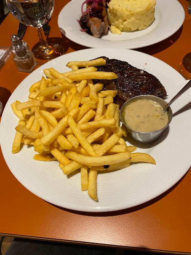 - Tartare de bœuf à l’italienne, pesto, roquette, parmesan, frites