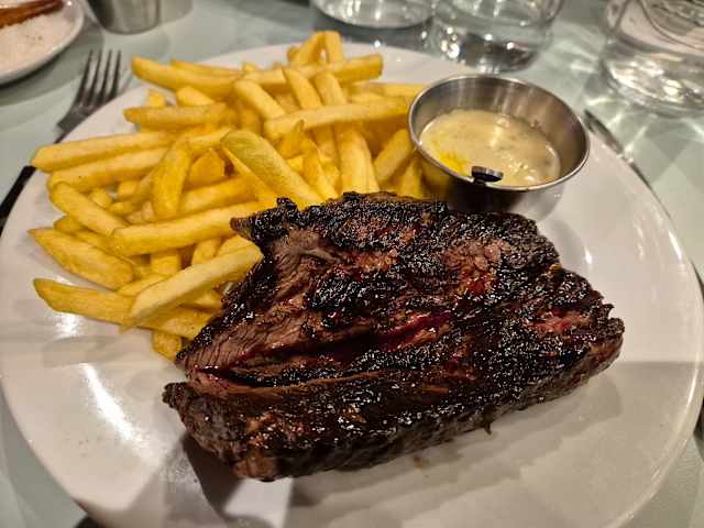 - Onglet de bœuf sauce gorgonzola, frites