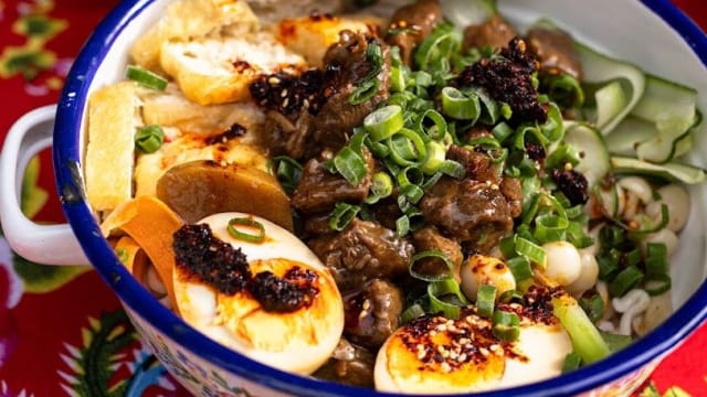 Nouilles maison sautées aux légumes paleron de boeuf braisé