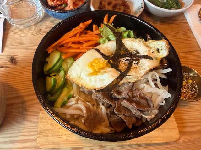 - (Kimchi* sauté avec riz et un oeuf plat ou sans)