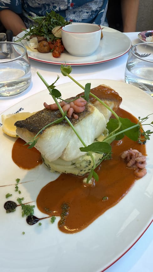 8/10Good pollock w potato mash. A little stiff but correct service. Ok ambiance & price.