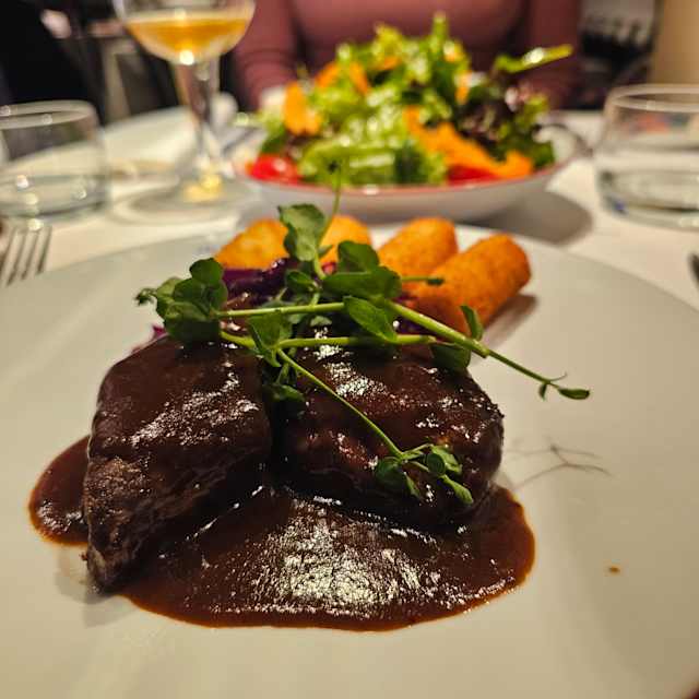7/10The service was good, but the main course was lacking. My sole was very good, but the potatoes were terrible. My partner ordered the filet mignon and it was fatty, over cooked on one piece, purple on the other, and barely able to cut. Very disappointing for a Michelin star restaurant and for filet. Our food was so bad that we did not want dessert or coffee afterwards.