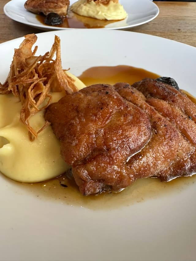 10/10How do the French women stay so slim when delicious buttery portions are so large and affordable. Lunch set menu €29 per person had really 6 servings including savoury cheese puffs to start as soon as you sit down. Followed by the best crunch crusty sourdough bread slices. Then your starter arrives in a hearty big bowl of creamy potatoes and leeks with croutons. Added to that, your large portion of perfectly crispy skin mackerel over buttery white sauce over crunchy bite size carbs. And if all that was not enough, 3 scoops of chocolate mouse and ice cream. Then, when you don’t think you can take another bite, a fancier came with the bill.