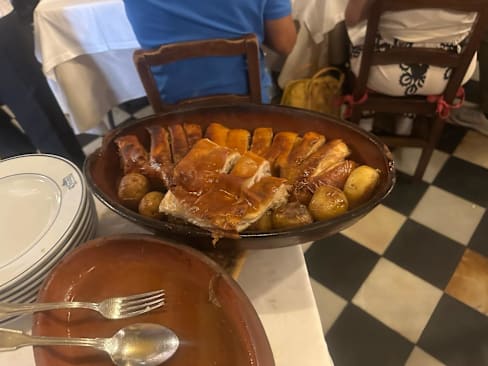 7.5/10We were seated at a table for four right next to the area where tour groups come in. In the time we were there for dinner two large groups came in.It was noisy and a lot of quick serving,tour over to get ready for the next group. Both groups were pretty loud…just having fun but it was not conducive to a relaxing meal. My expectations were high as this was recommended to someone in the US whose wife is from Barcelona.I made reservations quite awhile before our dinner date.I expected something a bit calmer for a relaxing meal and conversation.