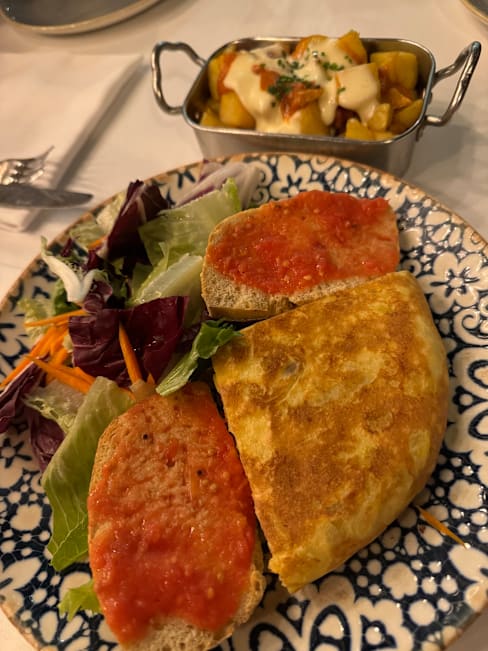 7/10The tapas starters were tasty, especially the bombas, and the deserts were fine. However, our main course, the meat and fish paella, was disappointing. It was dry, not very hot and overcooked. It looked as though it had been sitting around for some time. The wine, a Rioja, was very good but overall, we wouldn’t recommend this restaurant.