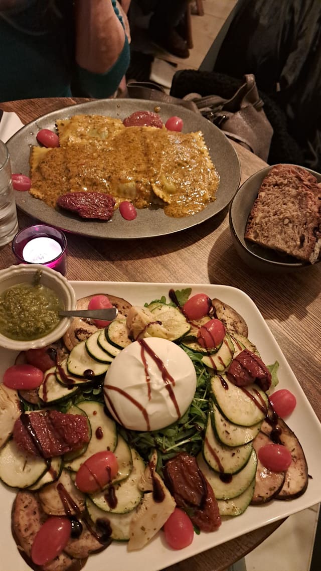 6/10This restaurant had a great tiramisu, great pesto and homemade hot sauce, but the eggplant was undercooked and rubbery. The restaurant is very small with not much ambiance, the person in charge has a lot of character and is fun. I thought there would be pasta selections but there were really only extremely thin crust pizzas options and some starters. The price was over 60 Euros for 2 and I wasn't sure we received the fork discount.