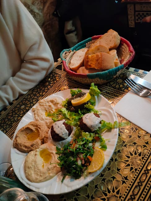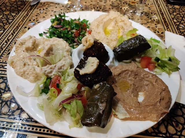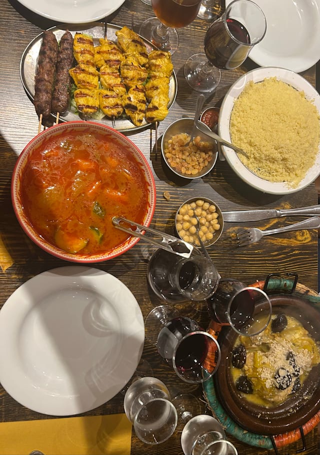 6.5/10The food was okay, the starter was the best part of the mean, we had the mixed starter plate, the veggie Tagine didn’t need to exist, and the dessert was dry and the baklava soggy. The waiter came across as rude I think because he’s didn’t speak much English and was Thrown off by having to talk to us. When we went to pay the bill the hostess told us the amount, since we had a 20% off I was wondering if it was already applied and she replied in a rude way, printed the receipt and almost forced it in my hand after she told me it was already added to the bill and I says it was okay