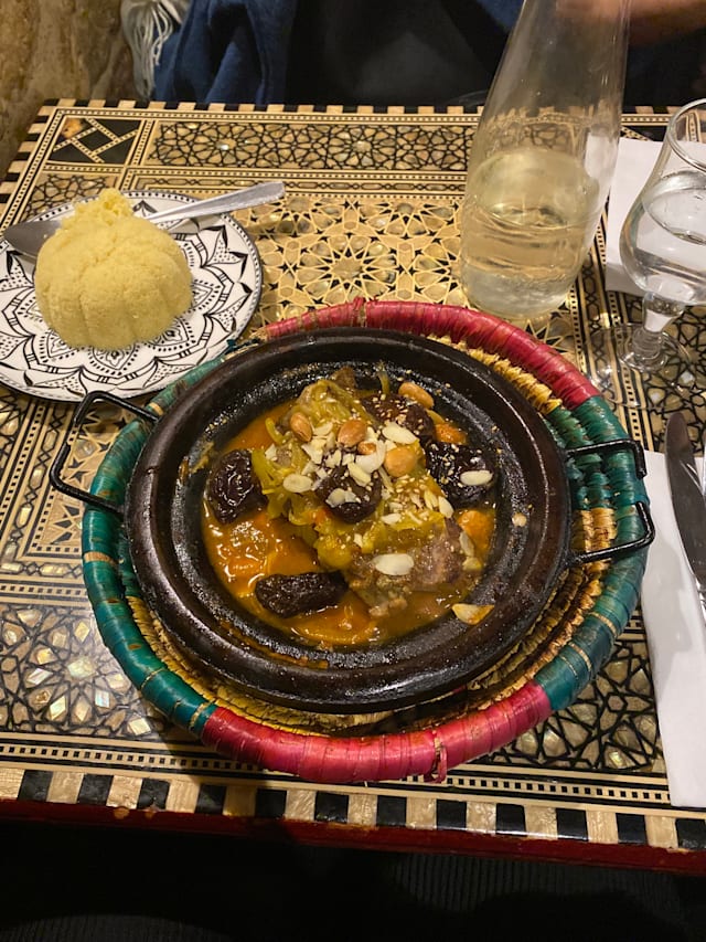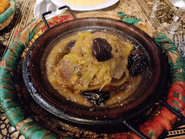 8/10We had a very good dinner with my husband in this restaurant last night. We tried 1 starter plate and 2 tajines. They were all very tasty. The tajines maybe needed a bit more of cooking. The place is very beautiful, decorated traditionally. The only disadvantage is that there are so many tables, so it’s totally crowded and it’s like you don’t have space to breathe between your table and the next one. The stuff is quite polite and helpful. I recommend it!