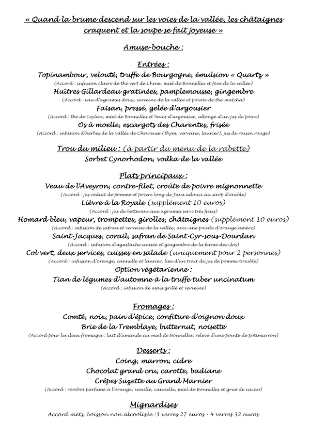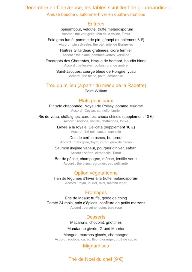 10/10Such a good place for a lunch, not too far from Paris. Excellent and very high quality of food and services. The vin was fantastic and well recommended for the food we ordered. Totally convinced by the charm of the surrounding environnement of the Vallée de Chevreuse
