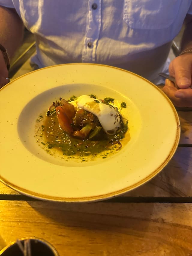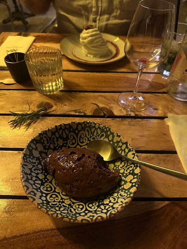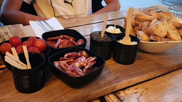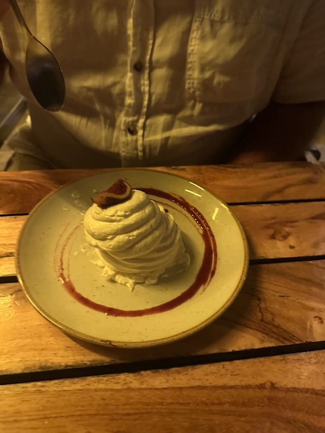 3.5/10It took them over 20 minutes to come and take our order, with 36 degrees of heat in the evening. Then they brought us a tiny bottle of water (the same style as they had flowers in the table next to us) for four people while we waited another ten minutes for the drinks to arrive… the rock music didn’t go with the setting. Shame. Food was mediocre.