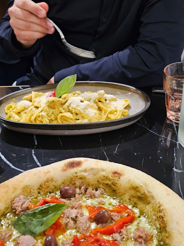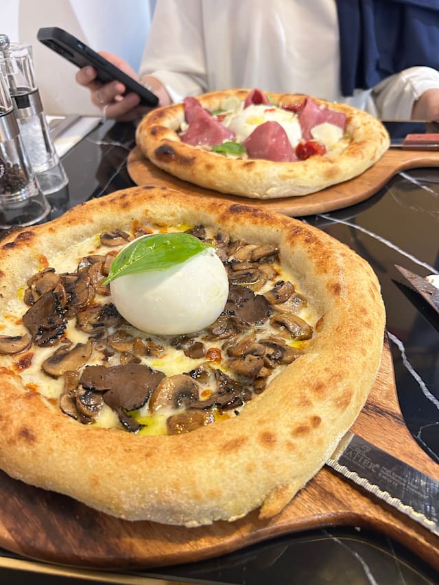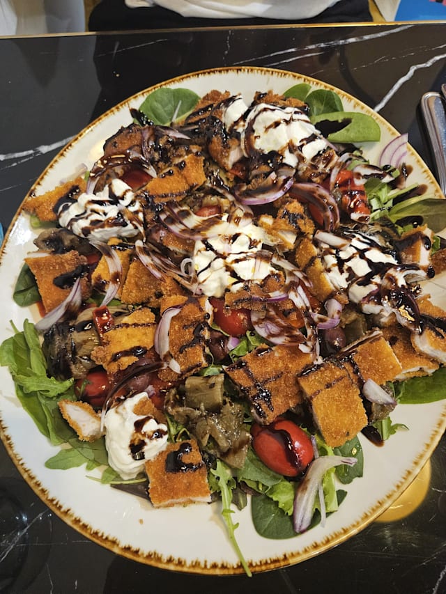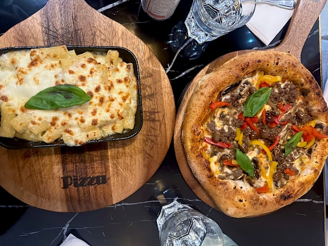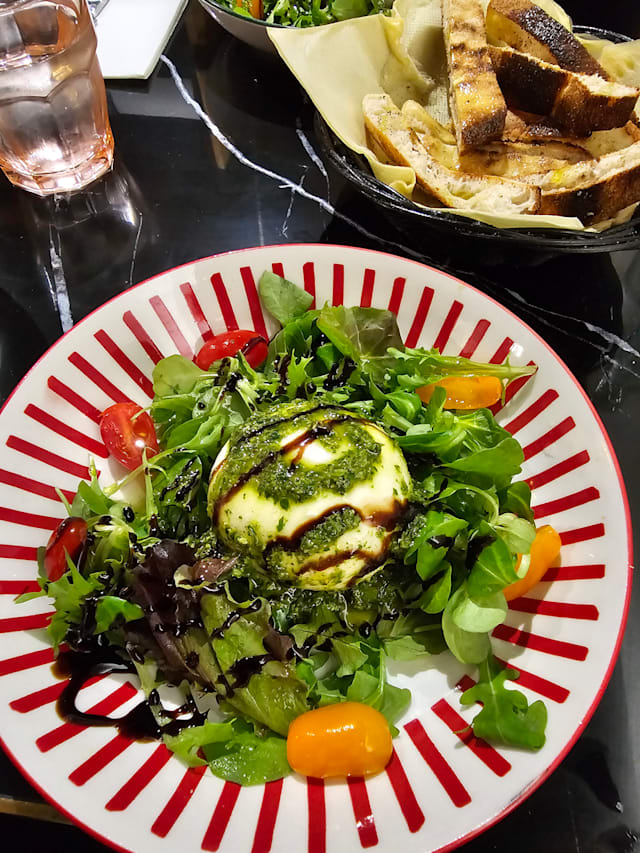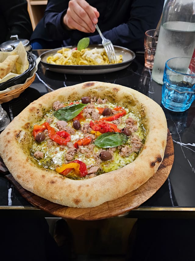 3/10Pizza with too much cheese No a/c The restaurant is “kid friendly” but there is no baby chair We asked for tap water and said they have only mineral, small bottle for 3.5 euro. Than we saw that other tables gets tap water. We asked politely because we were stuck to charge our phone and they said they don’t have charger Then table next to us asked the same and they took their phone to charge