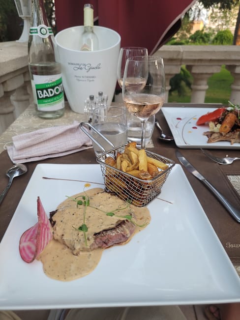 7.5/10Vero nice restaurant in a castle located in the center of Saint-Maxime. Interesting menù, good prices considering the location but service a little too slow and with some flaws: bread never brought to the table and the same for the ordered dessert. Due to this last issue we were not charged for the drinks, good compromise for what happened. Anyway restaurant to try if in the nearby.