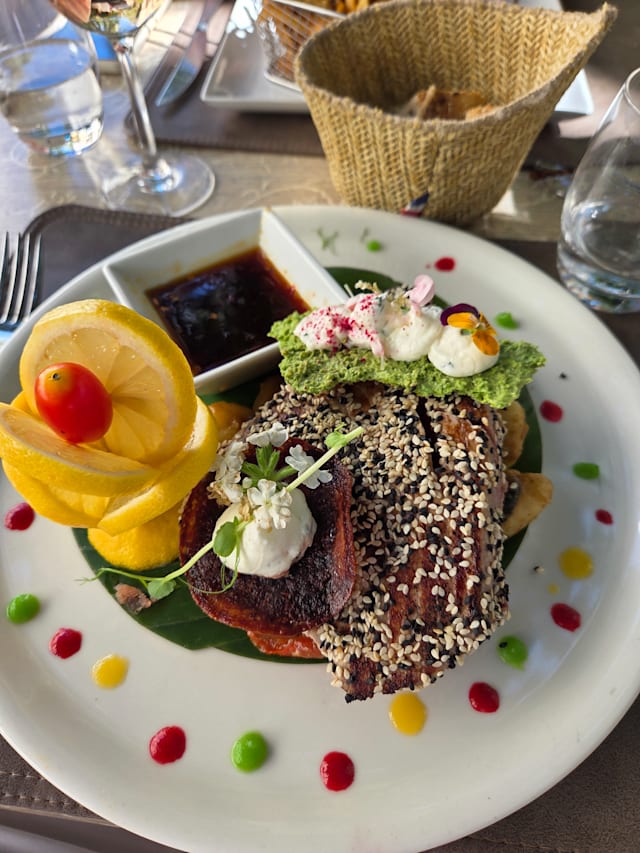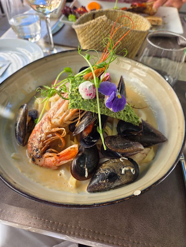 10/10Beautiful setting, food and ambiance. Do not forget a ore dinner drink on the lovely terrace above the restaurant. Highly recommended!