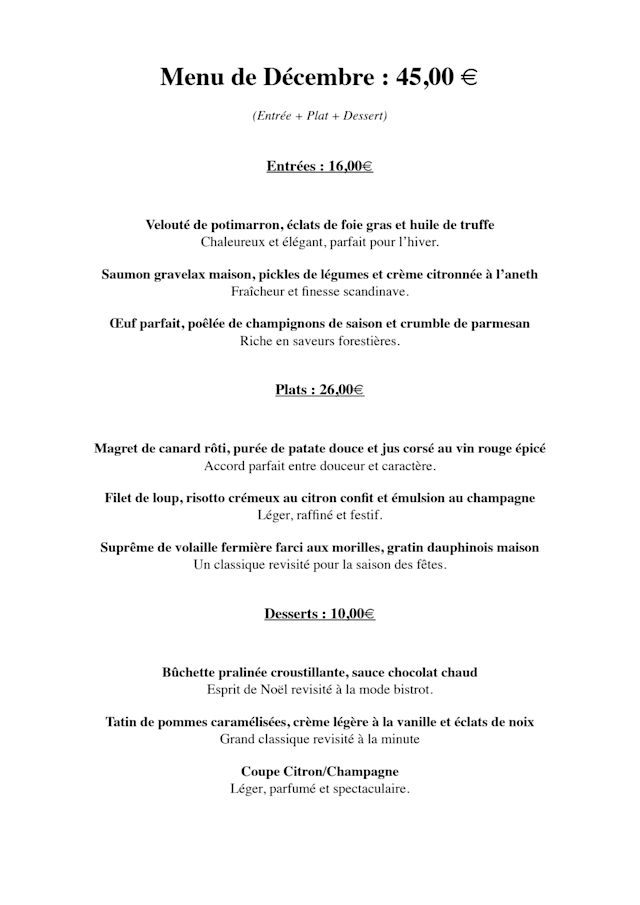 Thank you for your feedback and for choosing to dine with us. We're delighted to hear that you enjoyed the ambiance and found our service friendly and accommodating. We understand your concern about the beef being overcooked. It's important to note that you selected our daube de boeuf, which is a traditional dish where the beef is cooked very slowly and for an extended period. This method is intended to create a tender and flavorful experience, but we apologize if it was not to your liking. We're glad to know that you enjoyed the sauce, and we appreciate your kind words about it. Your comments are invaluable to us, and we will certainly review them with our kitchen team to ensure we meet the expectations of all our guests. We hope to have the opportunity to welcome you back and provide a dining experience that fully satisfies your palate. Thank you again for sharing your thoughts.