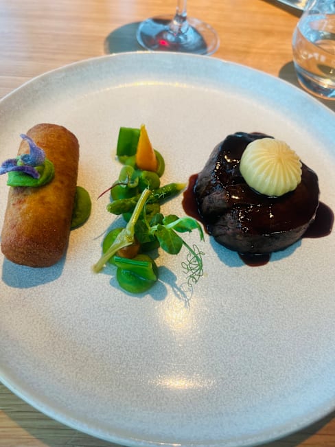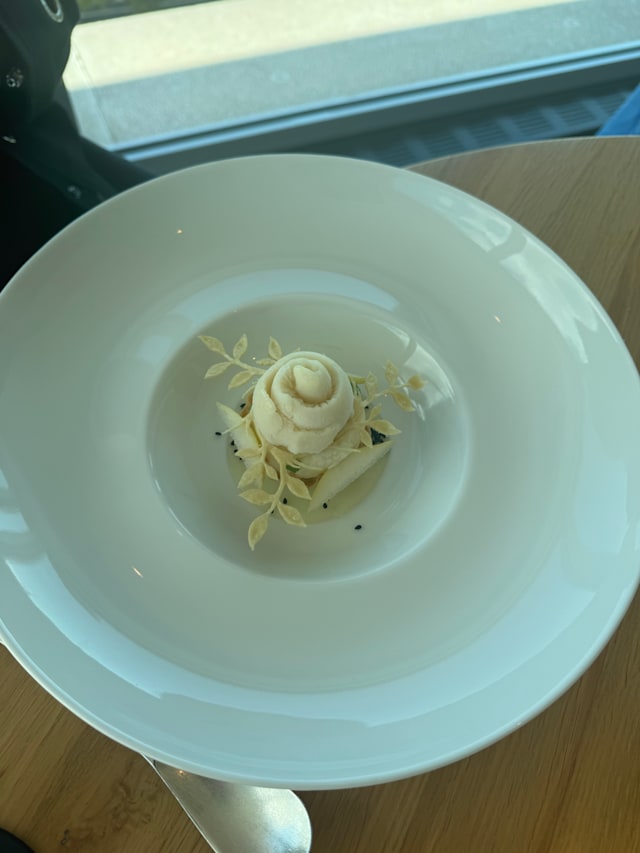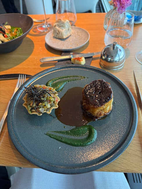 5.5/10Had a menu lunch with friends. Starter something with boiled cold leak, tasteless. Main course was pollock ( fish), with parnsnip piuree, not able to be changed with anything. One of the worst meals, unfortunatly.