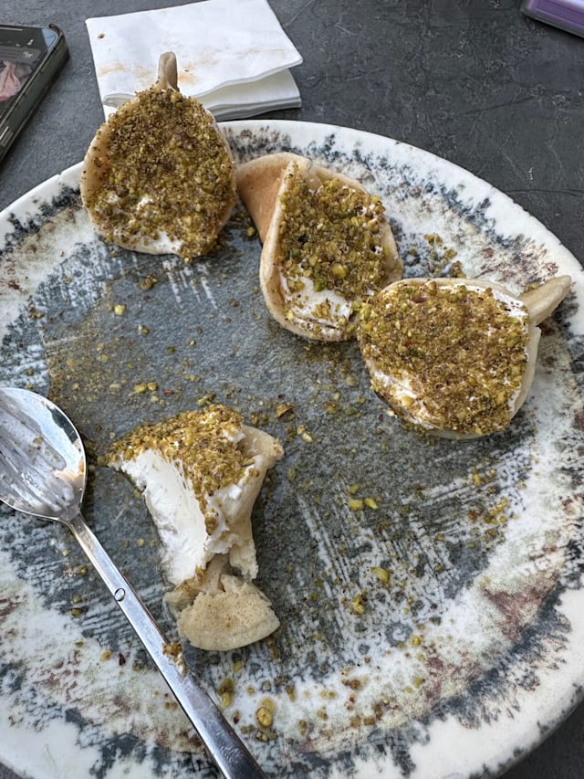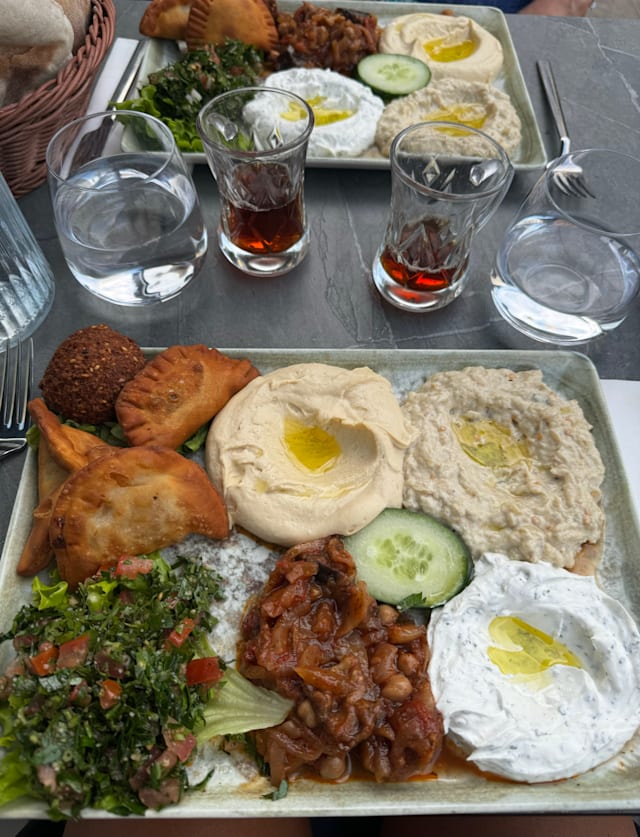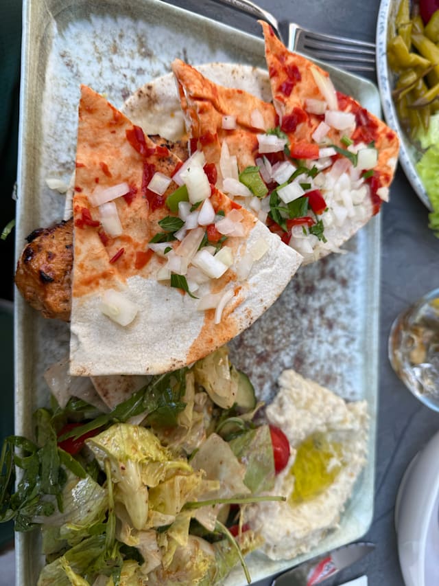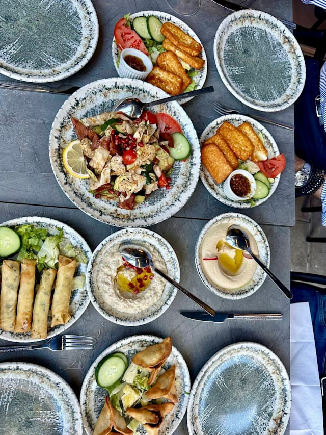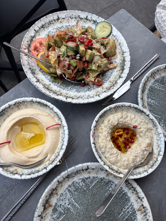 7/10booking via the fork, outdoor terrace . went for lunch. portion size good. mezze and chef's special was good. however, two meat base dishes were overcooked and burnt. lamb cutlets and arrayse lahme.