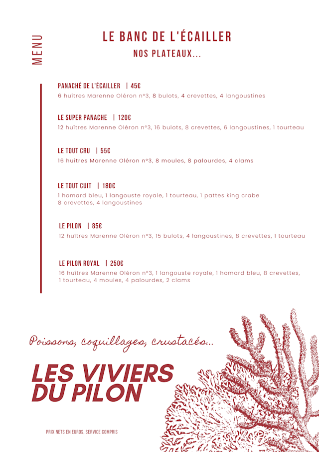10/10Excellent fish and seafood. Good list of wines. Restaurants with a splendid view on the harbour Professionalism and courtesy complete the scene. Very good.