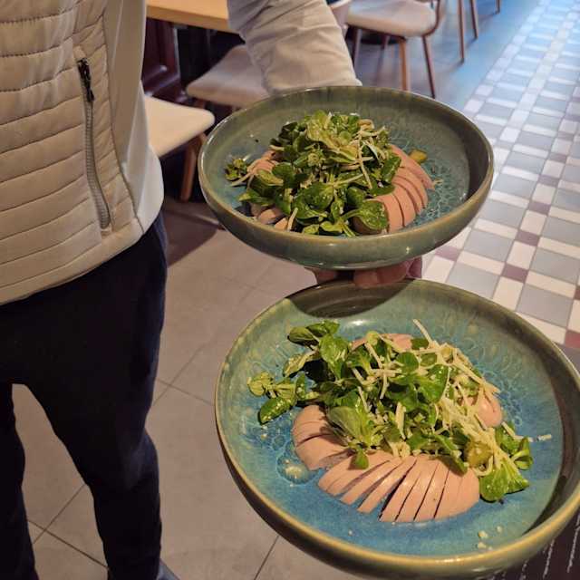 - Saumon Fumé Maison, Salade Tiède de Choucroute Nouvelle, Espuma au Raifort