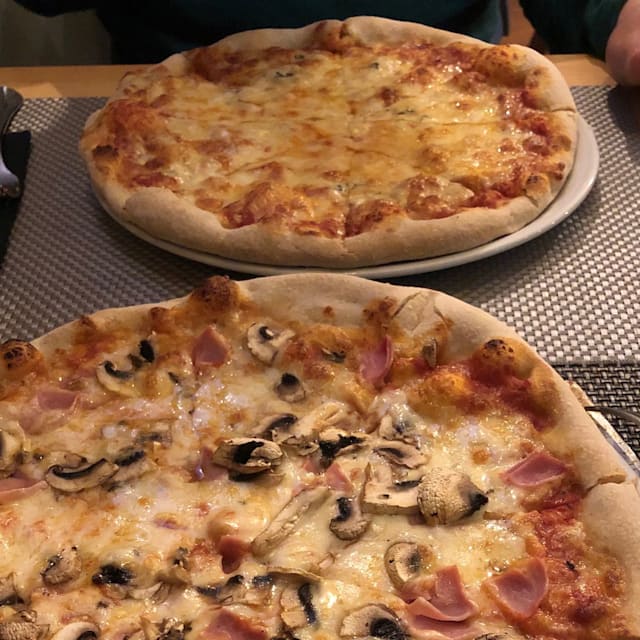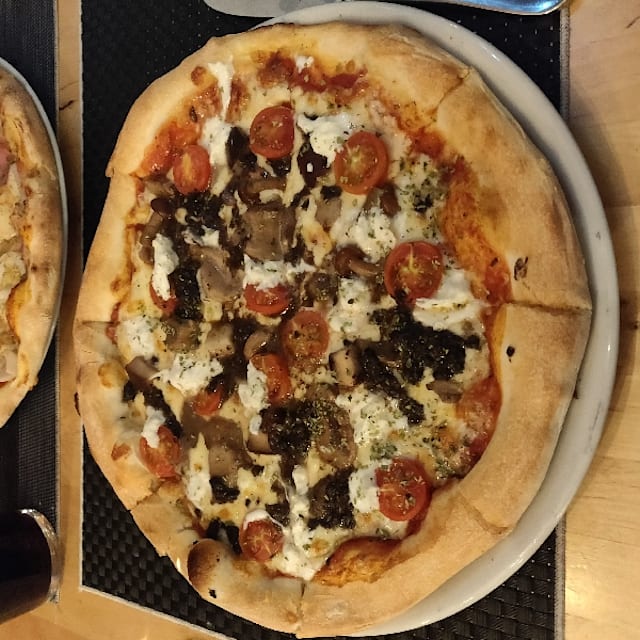 Tomate, mozzarella, champiñones frescos, jamón york y oreg