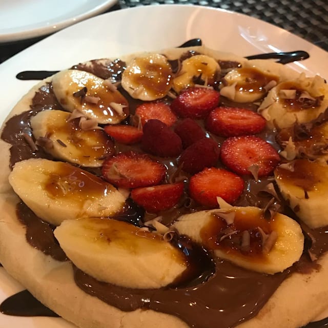 ( Fresa, mascarpone con frutos del bosque, vainilla, pistacho, dulce de leche, chocolate belga, ferrero)