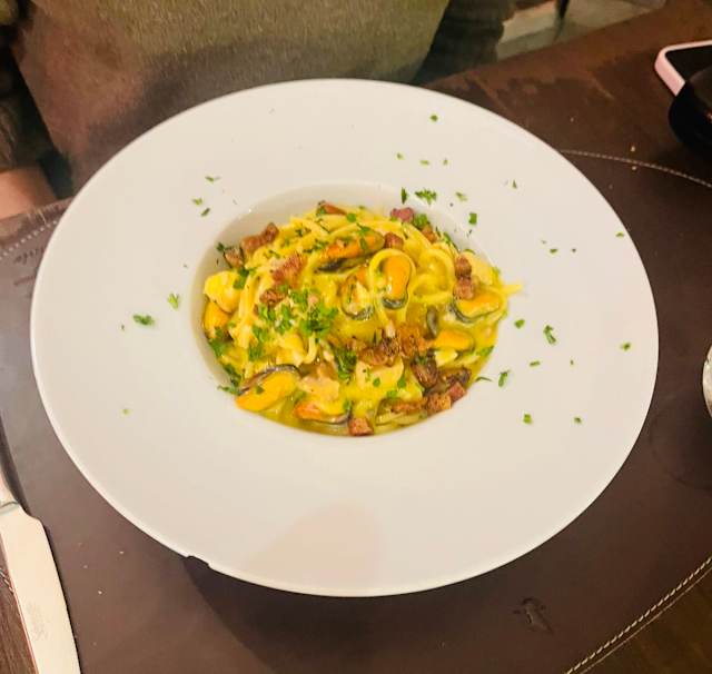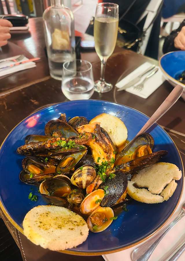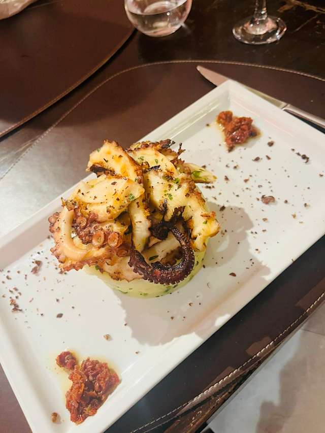 The meal was amazing! A real find and locals eating here too. We started with mussels and bruschetta , then risotto and swordfish. Looking around all options are huge, creatively presented and super tasty. Quality of fish is superb, swordfish was softest ever tasted, enormous and cooked in a bag with mussels, clams and tomatoes. The risotto was delicious and cleverly presented. The sides are enormous too. Ignore the location (road corner), the ambience inside is great, well designed, and service is excellent. Congratulations to the chef. Best meal we have had so far and we have had lots of great ones!