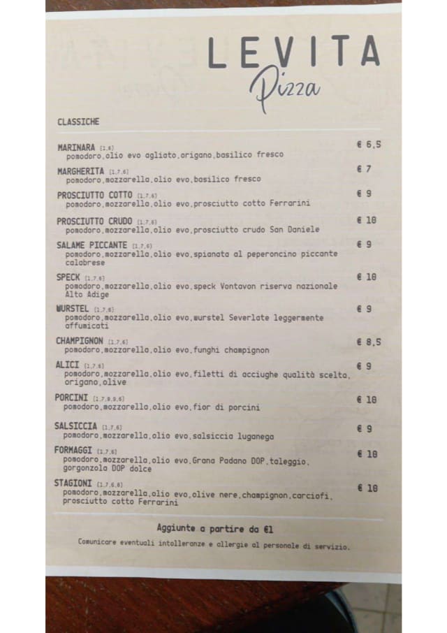 Levita Pizza e Cucina is identified as offering italian cuisine.