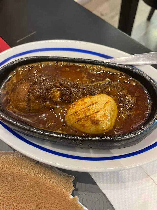 Piatto a base di lenticchie rosse, cotte secondo la tradizione etiope ed eritrea, aromatizzate con curcuma o berbere servito con injera