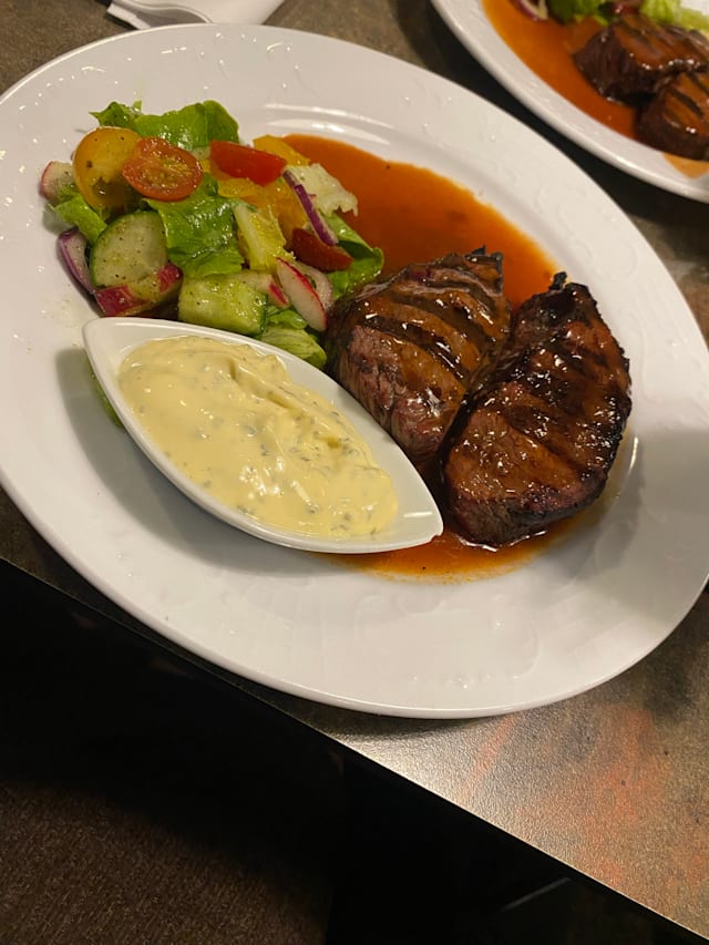 7/10Good service!The food was ok nothing special. The Meat came not so warm , i asked the waiter and they fixed it .The cafe of paris smör came with curry and i did not like, they should have specified that in the menu. The place is small ,dark and the decoration could be better. Overall I think that the price is high and the quality is low.