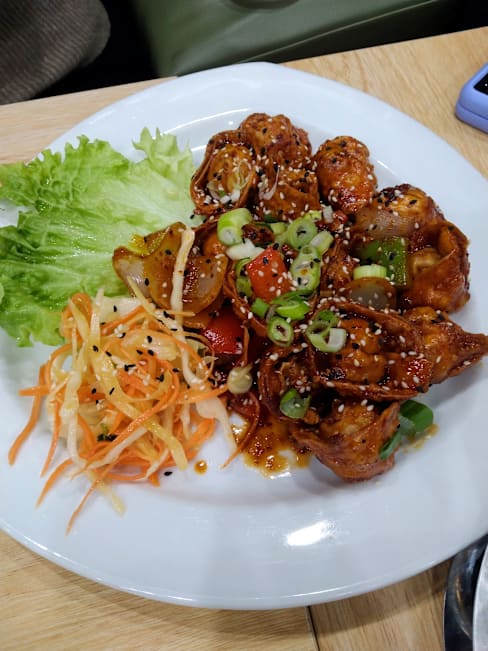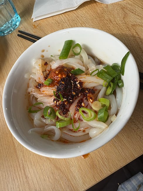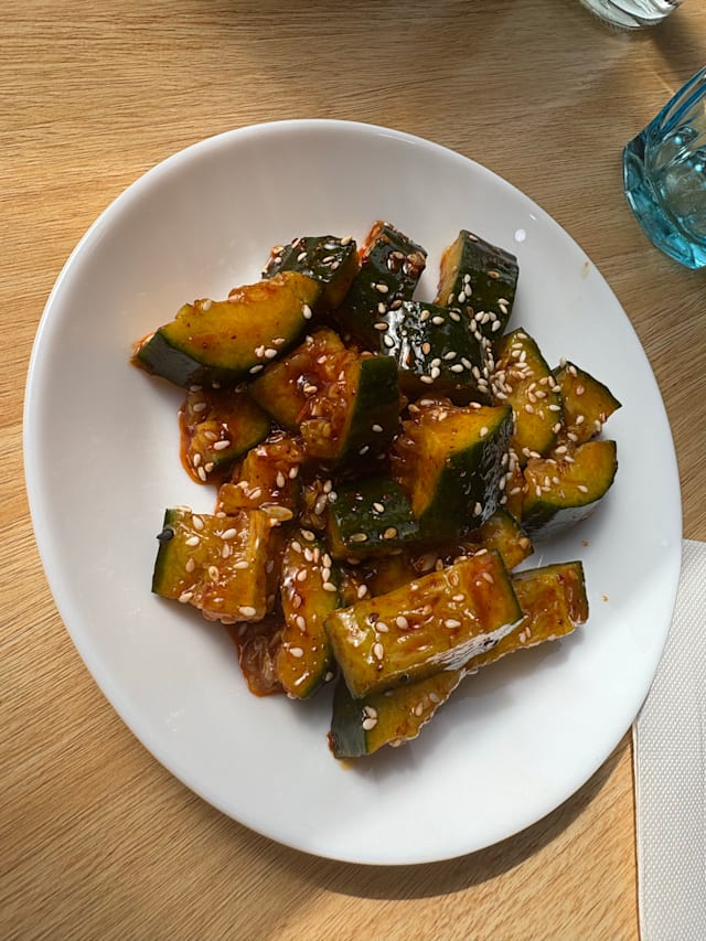 9.5/10I asked for extra spicy and I got that. Cucumber salad, cold jellied noodles, and a chicken dumpling soup. All very fresh and delicious.