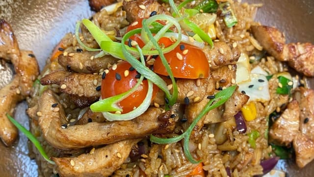 supplément au choix : boeuf sauté , poulet sauté , crevettes sautées,omelette du chef ,kimchi ,concombres marinés (entre 3,5€ & 5,5€)