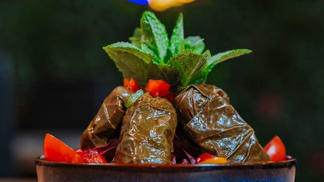 Degustación de hummus,moutabal,labneh,muhamara,falafel,kebbek,rakayeb de queso,fatayer de espinacas,warak inab,ensalada fatoush,tabouleh,arnabit de liba,un plato principal a elegir,postre del chef. (no incluye la bebida )