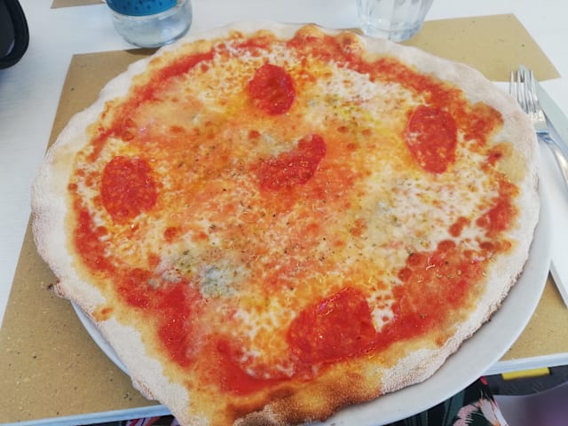 6/10Pizzeria a bit further away from the beach. Directly adjacent to the street (cars passing), plastic chairs, not all ingredients are fresh but great to pick up a pizza to go!