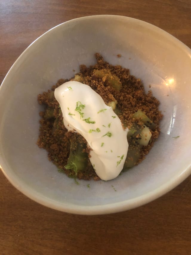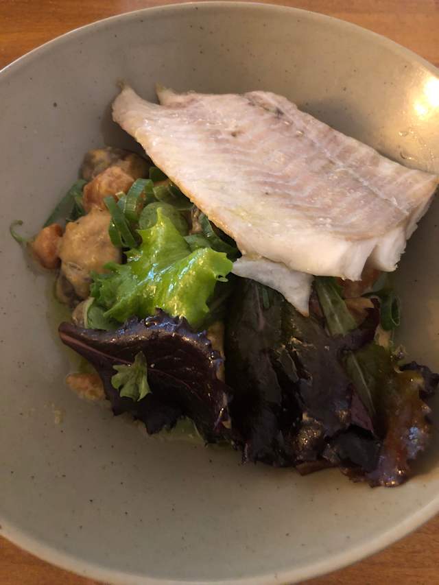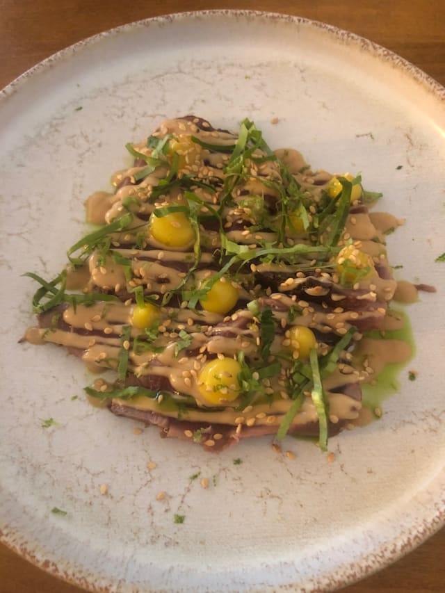 10/10I had a very nice Saturday lunch with tuna tataki to start, salmon for the main course then apple and kiwi crumble for dessert. Everything was delicious and I enjoyed the music too.