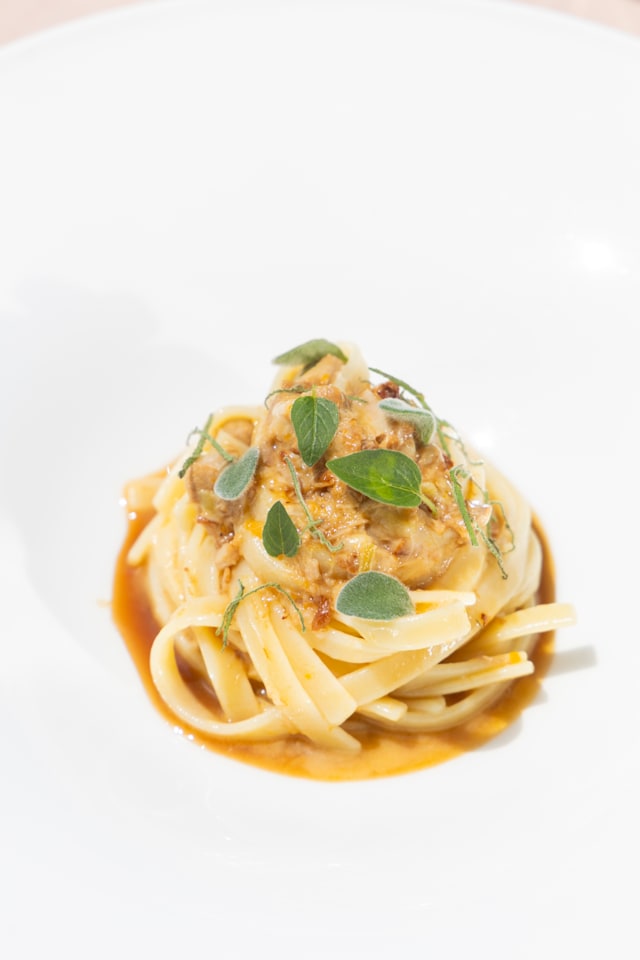 Tagliatella benedetto cavalieri, vitello al coltello e jus alla salvia