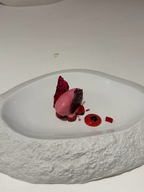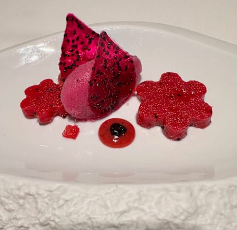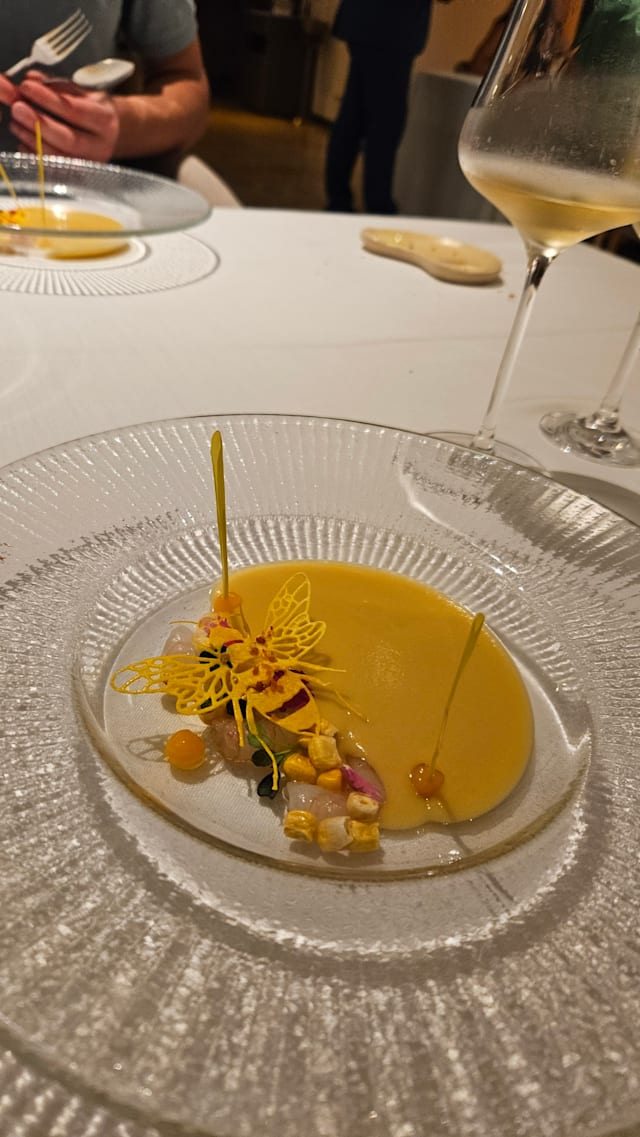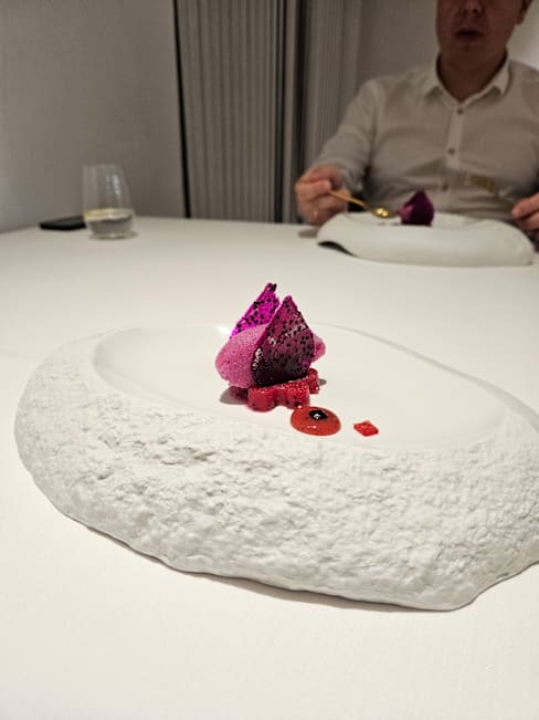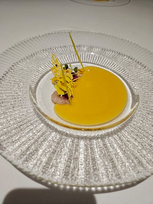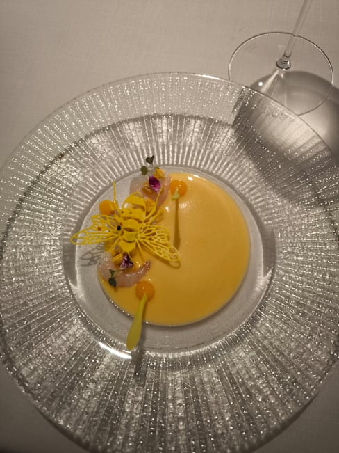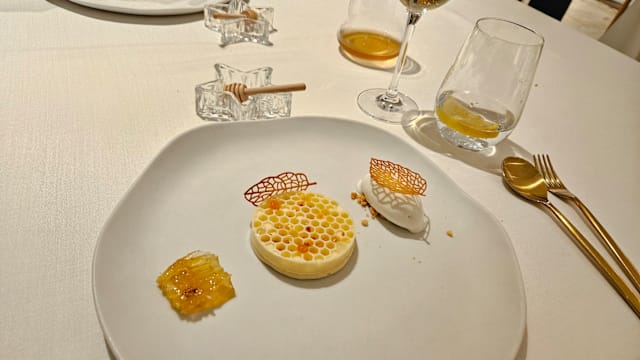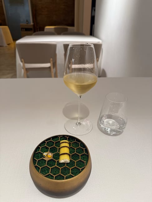 9/10+4The service was really fast and every dish from our 14-course meal was explained very nicely. We also got very good recommendations for the wine. Our favourites were the squid and the spirulina snack. All the dishes had really nice texture and were very interesting. The honey theme was pretty nice and gave a really cool twist to the dishes. Not overpowering but matching it. Although the food and service were amazing, the ambient was a bit too sterile for our taste. However, if you are looking for a modern minimalistic setting, this restaurant is perfect for you.