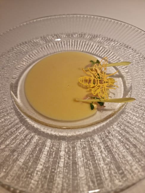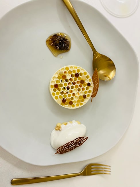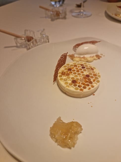 9/10+4The service was really fast and every dish from our 14-course meal was explained very nicely. We also got very good recommendations for the wine. Our favourites were the squid and the spirulina snack. All the dishes had really nice texture and were very interesting. The honey theme was pretty nice and gave a really cool twist to the dishes. Not overpowering but matching it. Although the food and service were amazing, the ambient was a bit too sterile for our taste. However, if you are looking for a modern minimalistic setting, this restaurant is perfect for you.