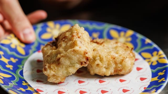 Un crocchè del maestro, un bocconcino dorato e una frittatina in tempura
