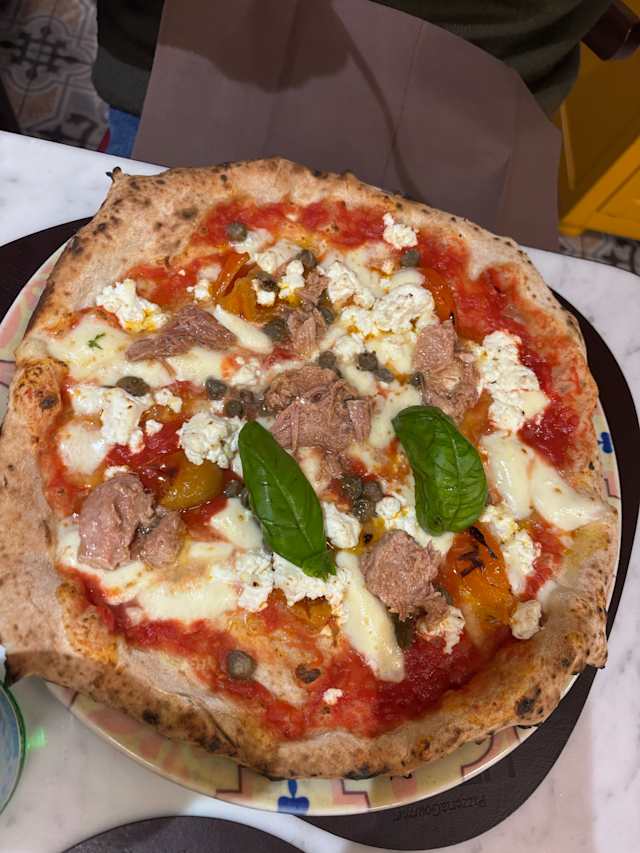- Peperone papaccella vesuviana, ricotta di agerola, capperi di pantelleria, tonno rosso del mediterraneo, fiordilatte di agerola e basilico