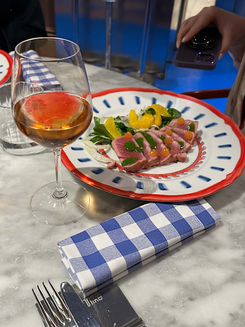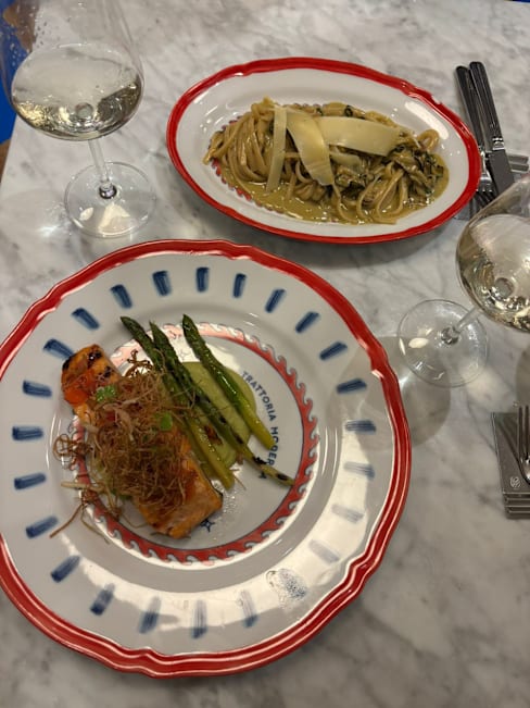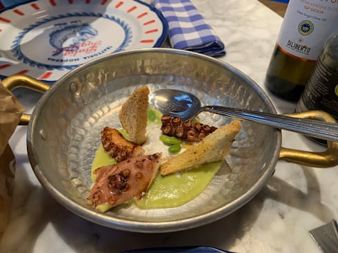 10/10The food was excellent and well served. I had the appetizer of eggplant and my wife had the appetizer of chefs meatballs. Each came in a hot copper bowl such that they stayed warm while we ate them slowly. The table bread was whole wheat and perfect for these to enjoy the tremendous sauces. Their take on a Negroni, “Il Conte” was super. My dinner of risotto with saffron and venison ragu was excellent. The rice was a variant from classic Arborio rice. Again excellent. The wait staff were polite and attentive. Ambience is casual dining but elegant in the enormous window views of the street. Definitely a 10 out of 10 for semi casual dining. Prices were great and The Fork discount of 30% on food was right on the bill.