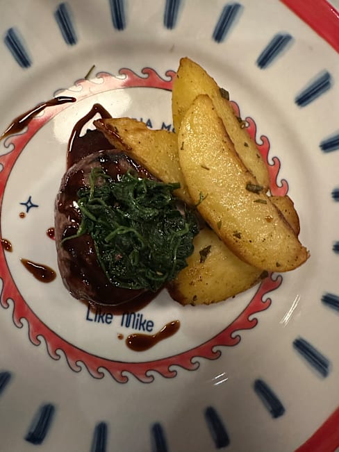 8/10We had the beef fillet medium done. I can sometimes do medium rare. I’m so glad I asked for medium this time, was quite rare. Apart from that food was very nice. Had the cannoli dessert which was delicious. I have quite a sweet tooth and the ricotta filling was sweeter than I’m used to, but no complaints. I’m not a fan of tiramisu, but I tried my companions, and it was delicious too. We got there early (7pm) and the place was deserted. By 7.30/8pm place was full, but never noisy.