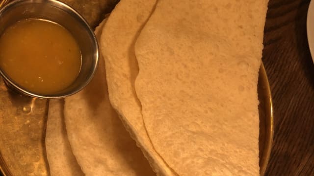 Ett ojäst indiskt tunnbröd med tre ingredienser vetemjöl,vatten och salt.
