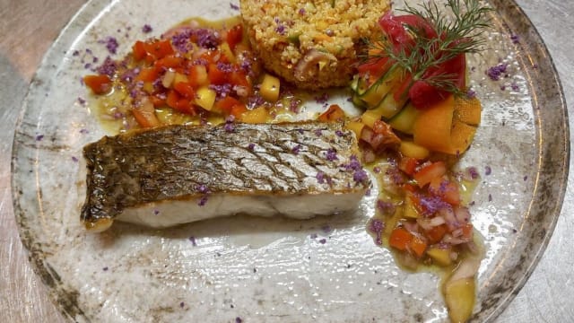 - Cassoulet de poisson blanc d’arrivage* au jus d’écrevisse, chiffonnade de gravlax snacké et légumes de saison
