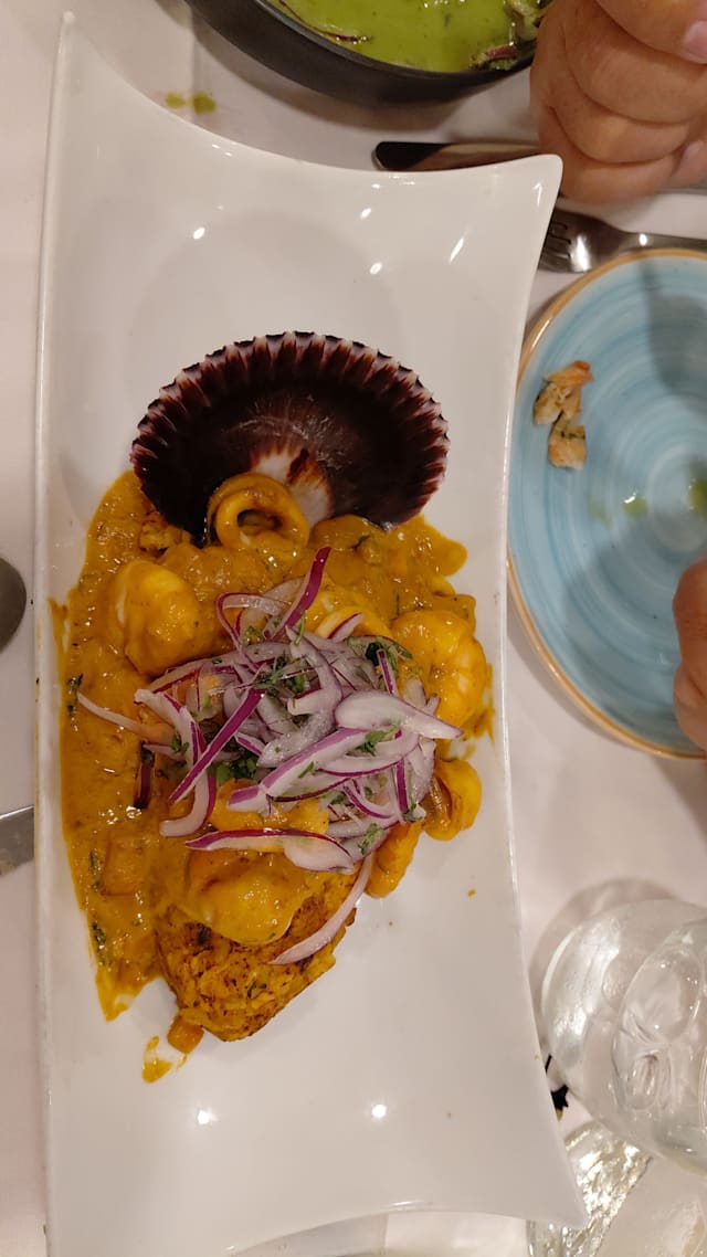 Nuestro chef le deleita con la versión de ceviche arrocotado limanta, con su toque picante, a base de pesca del día, frutos del mar cocidos, chicharrón mixto y crujientes de boniato y chifle