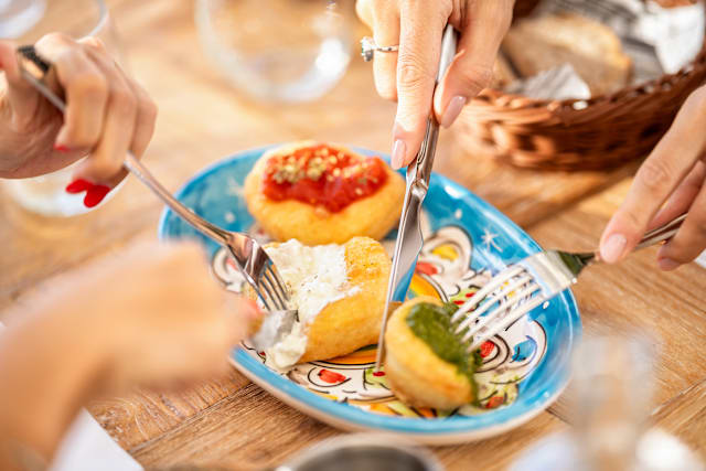 Fritas y sazonadas con aceite extra virgen de olivo, ajo, vinagre y hierbabuena