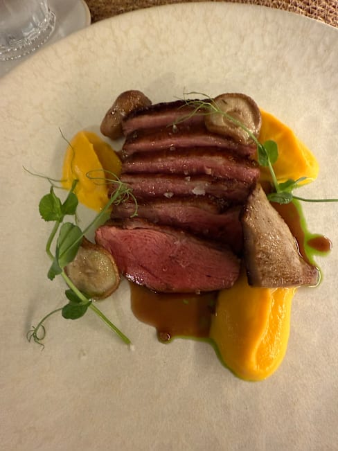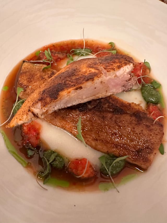 10/10Its reputation is well deserved. The food is some of the best food we have ever eaten. The appetizer of tuna was perfect. The entrées, one of Hake and one of duck was as good as it gets. The seasoning the presentation and the flavors were outstanding. The dessert with white chocolate and mango in the sauce was of the same white chocolate and mango. The bread was warm and crisp and crisp on the outside salt on the inside it was rise of some sort that was just wonderful with olive oil. We asked for a glass of wine for one of us and it was a red that was just perfect and the whole bill was all inclusive of everything we had and had, including coffee. Great food, great value. OK