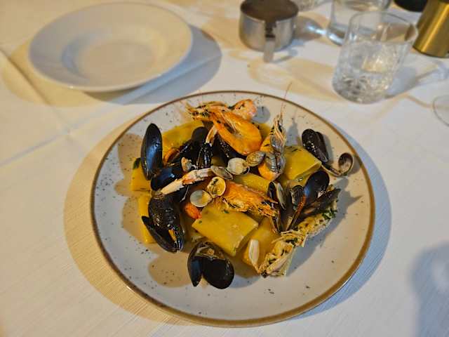 10/10We stopped here while visiting Pescara for the weekend and the food was great. They make fresh pasta and seafood which all tasted amazing! I ordered the caramel cheese cake for dessert and being from the United States I appreciate a good creamy cheese cake and I can honestly say it’s one of the best cheesecakes i’ve had. 10/10 recommend stopping here while in the area!! The staff is also very nice and welcoming, the restaurant is also child friendly which was a great plus!!!!