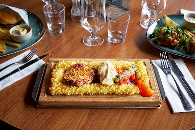 Serveras med krämig bearnaisesås och fluffig potatispuré