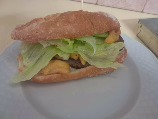 - Hamburger, pomodoro, insalata, salsa cheddar