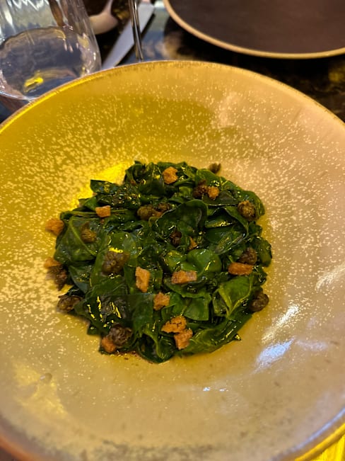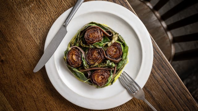 5/10We were sat in the back of the restaurant in a small dark room despite arriving when the restaurant was empty at 7.30pm. My starter of egg and mushrooms was very salty and I like salt! The lamb main was not very pleasant, both the portion of loin and kidney were fairly tasteless and really underwhelming. The desert of figs and goat cheese sounded like it should work but for me it just did not make for a pleasant end to the meal and I struggled to eat it.